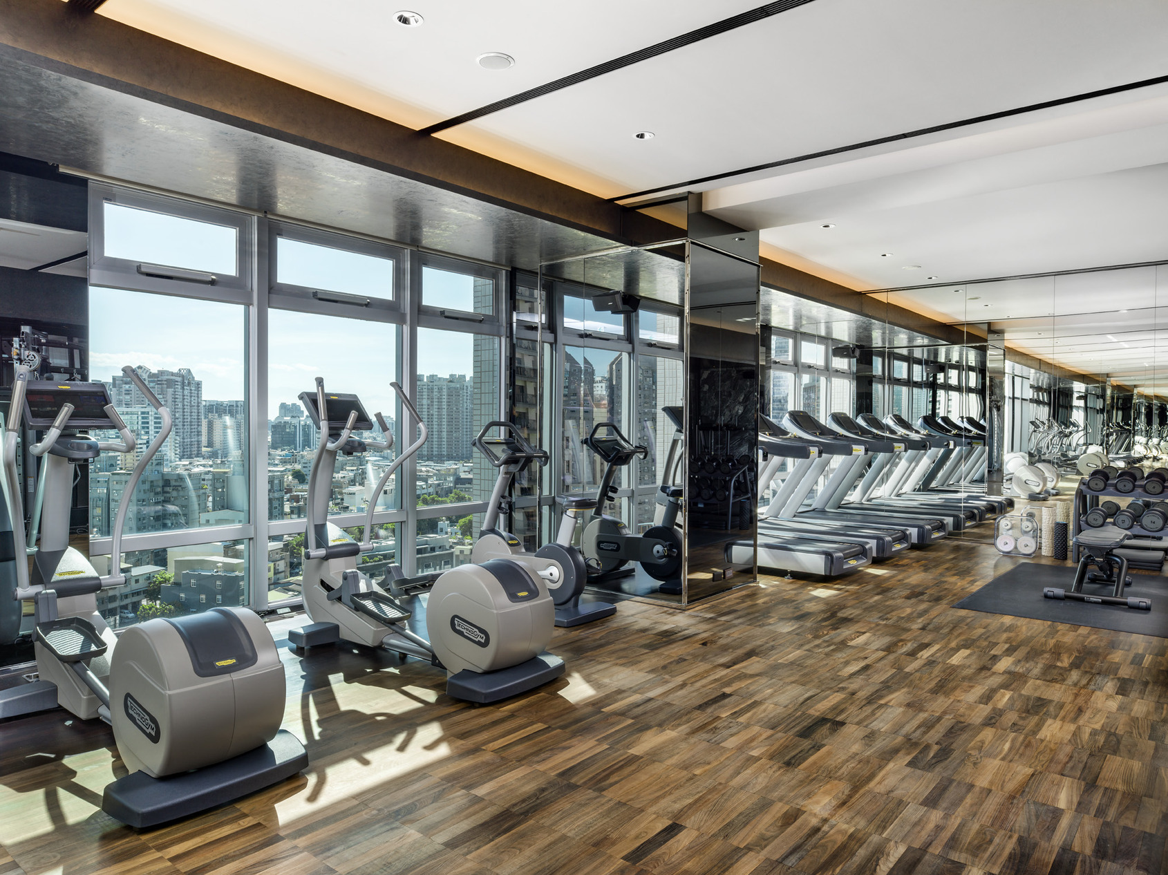 Equipped with premium Italian-imported Technogym treadmills and professional strength-training equipment, the fitness center offers a comprehensive workout environment.