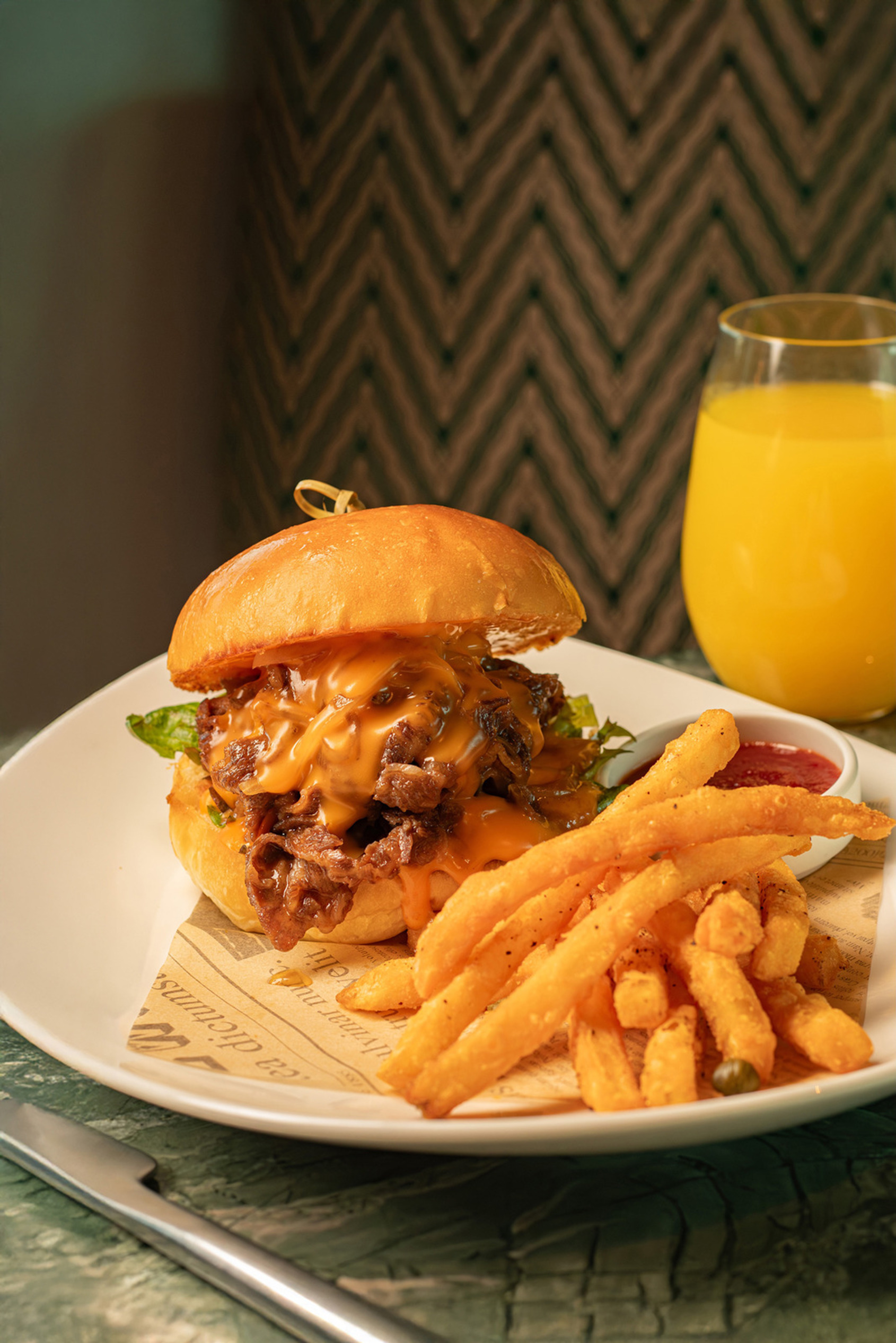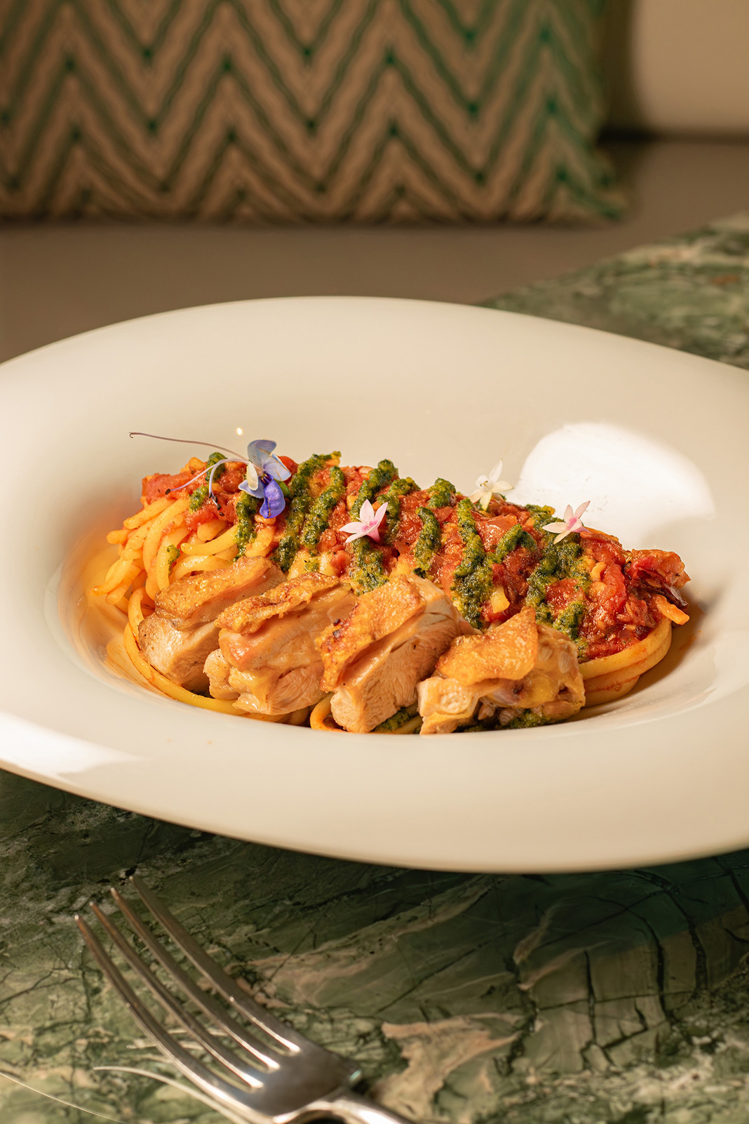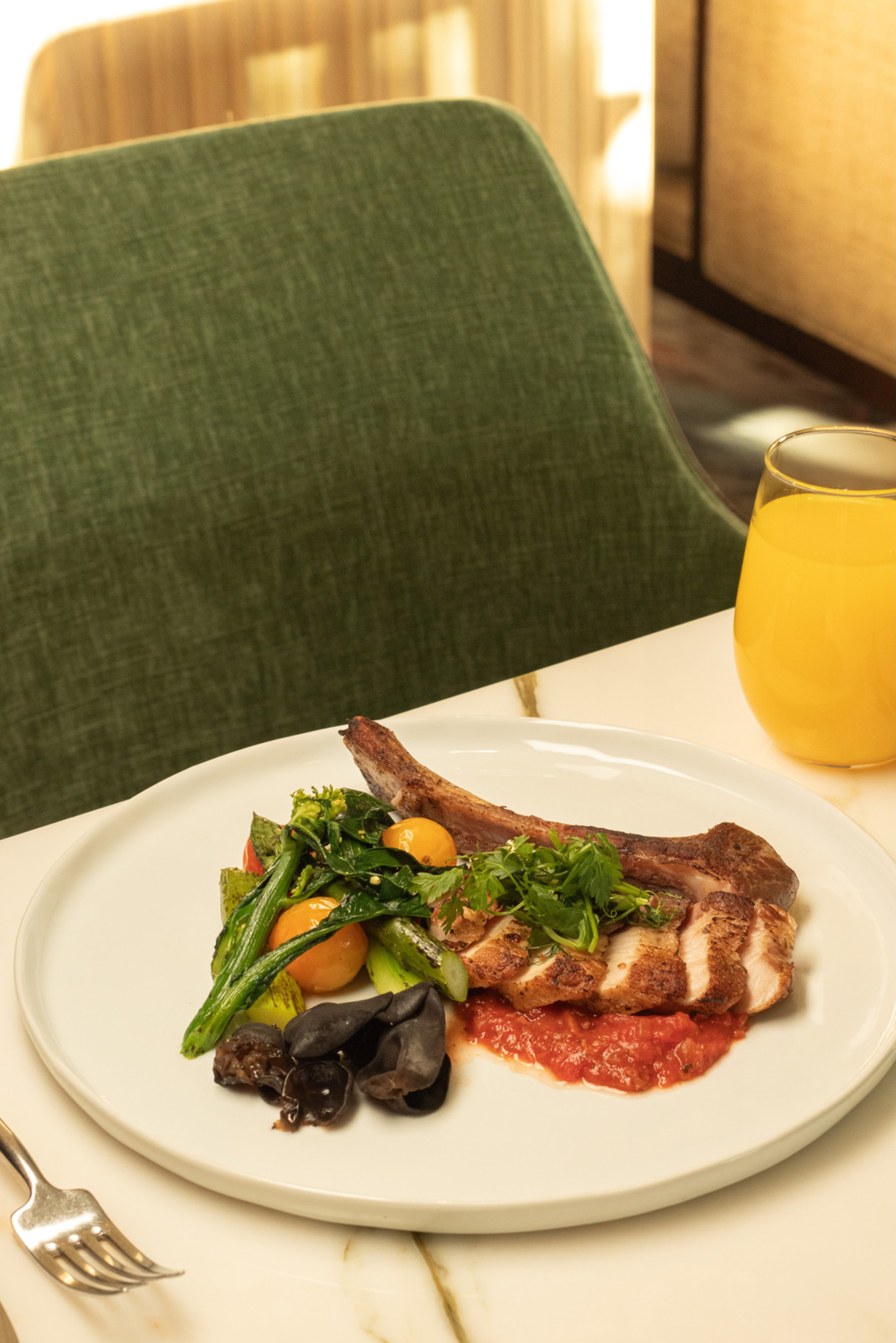 At the highest elevation in Kaohsiung’s Asia New Bay Area, flowing water motifs and contemporary artistry set the tone for a sensory dining experience that bridges dawn and midday.