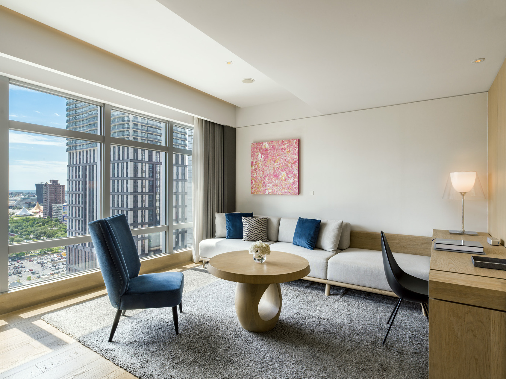 The distinctive corner windows offer simultaneous views of both the city skyline and the harbor’s splendor. Within the serene and spacious interior, sunlight becomes your constant companion.