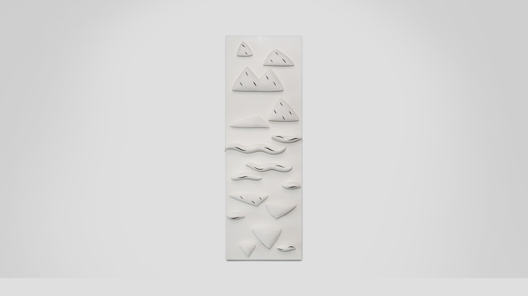 在作品結構上,以個別單元作複數組合,將不同的物件構築成如一幅幅立體化的物件山水作品,進而運用水墨的空間留白與山水畫的「高遠」、「深遠」和「平遠」三遠法,結合各式表現山石紋理的披麻皴、雨點皴、斧劈皴等傳統畫論,在這裡作全新的詮釋,讓一個個形象山川水景的「物件」,安靜地融會在整體畫面中。
