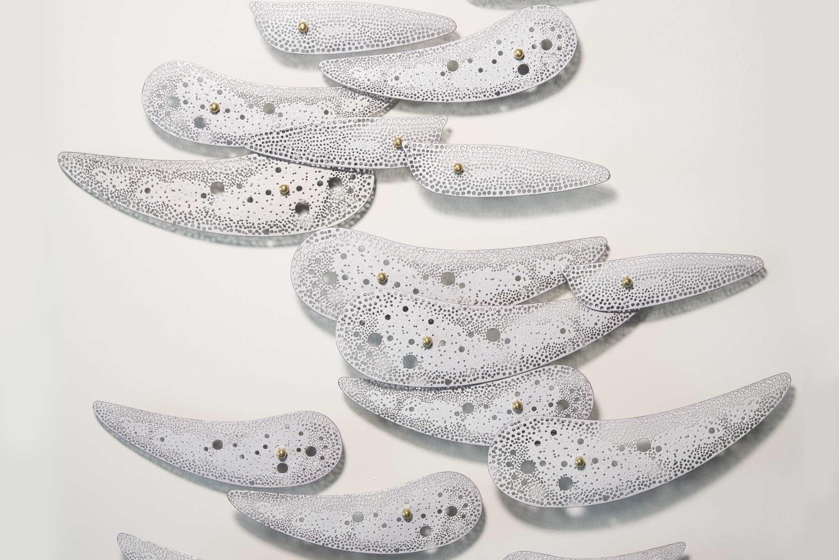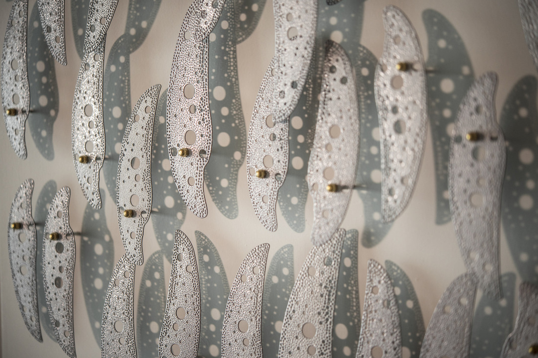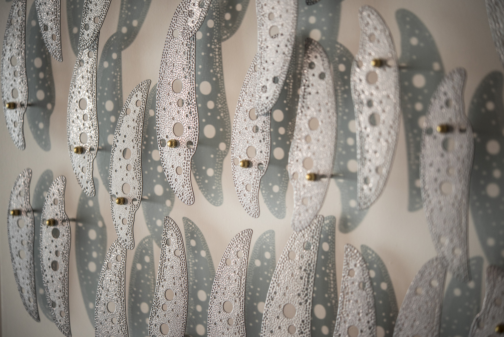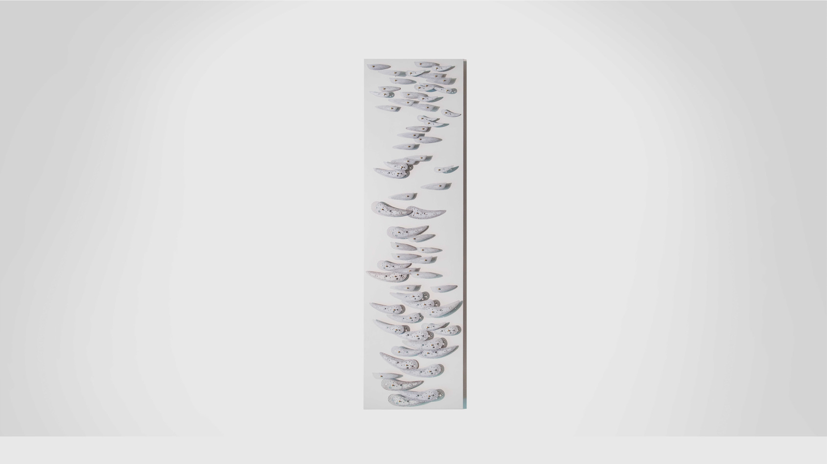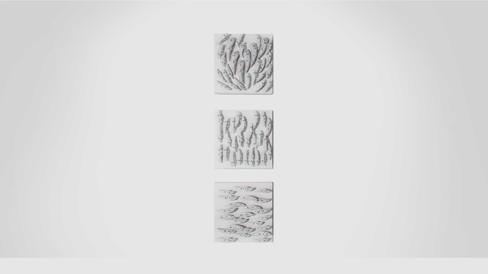 水流的方向思考我們觀看事物的方式,相同的事情經由不同經驗、不同的角度,影響現有思維。一連串方向式的物件,引導觀者在作品當中找出心之所向,猶如海中物種游動的方向,抑或是我們在海畔欣賞海水由近至遠的美好景致。