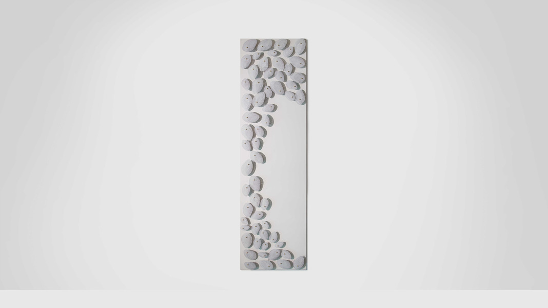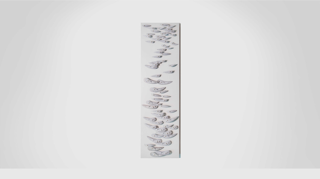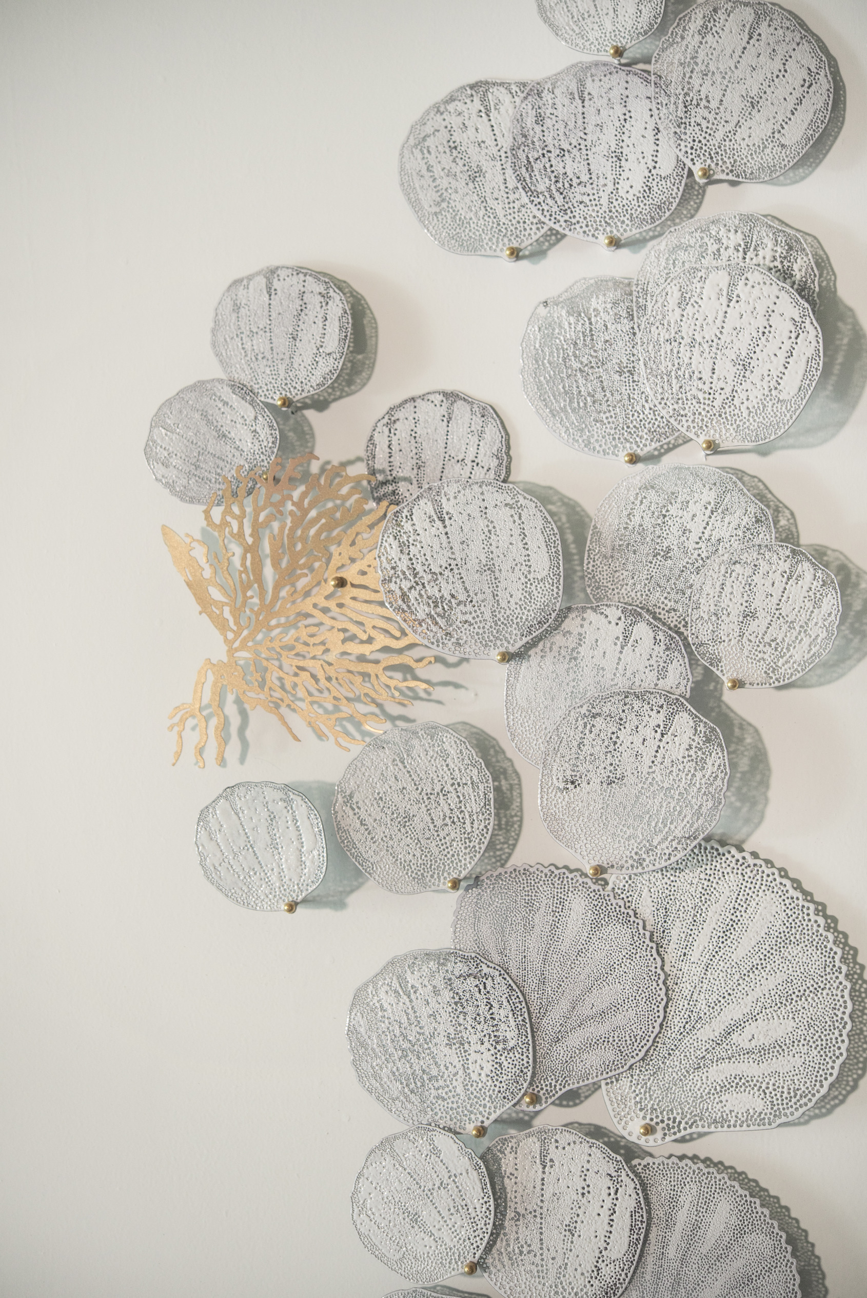 遠古神話,人魚為了追求愛情或自由而勇敢選擇,最後雖然成為泡影,卻深刻留下了動人的寓言,刻劃人心。以海中貝殼的擬態水氣泡,由上而下、由下而上的變化中,看起來具象的形體,卻出現不存在的游移狀態,以此創作勾勒意象。
