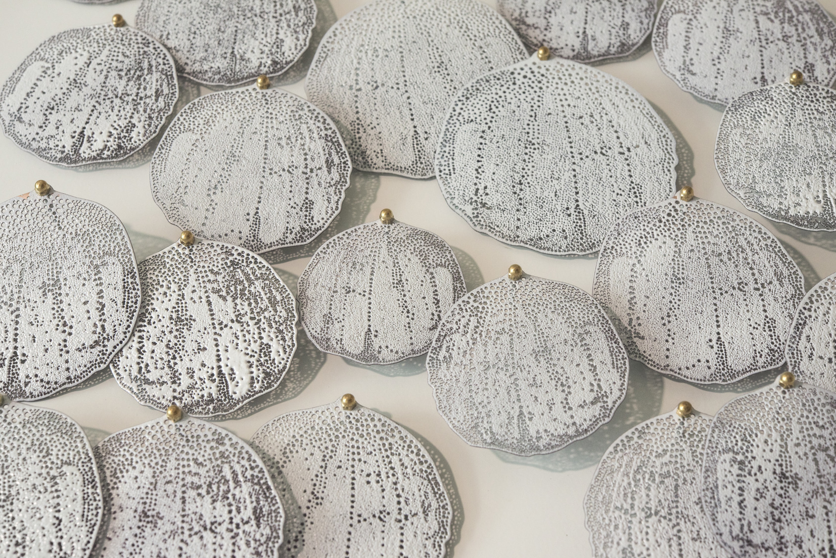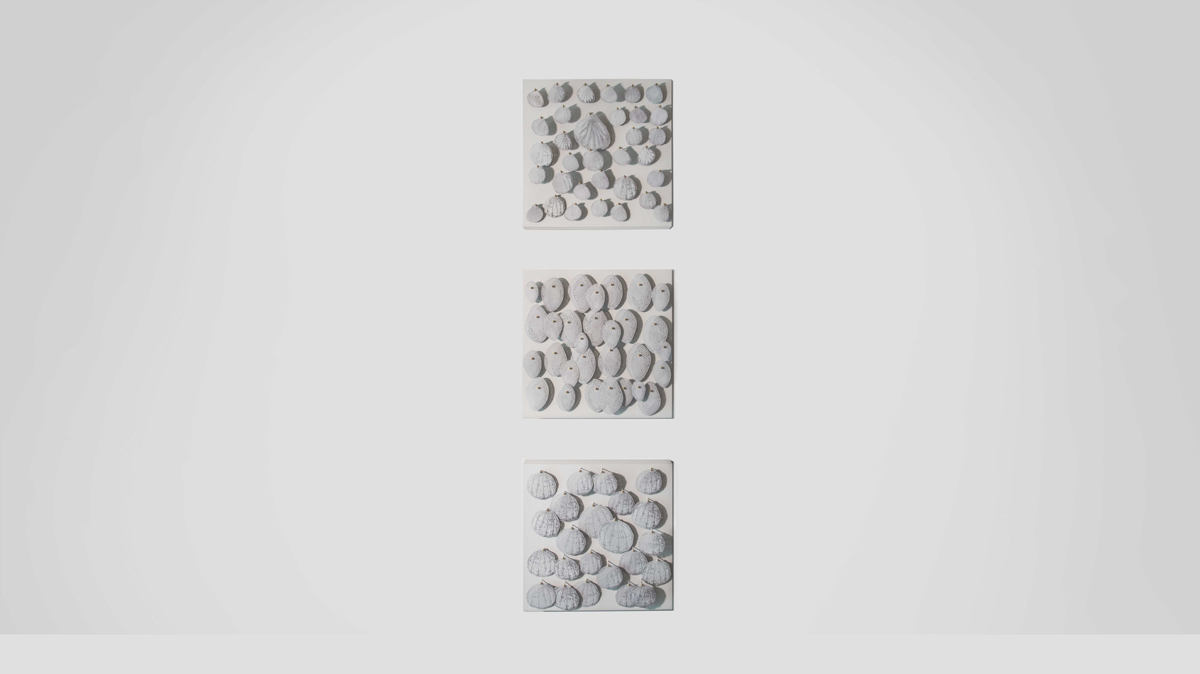 沿著海邊行走,一覽在時間海水沖刷的歷練下,遺留下這些如貝類、石塊的殘骸,一個個隨機排列組合,如同歷史中軸般,在排序的脈絡下,看見了時間的積累。